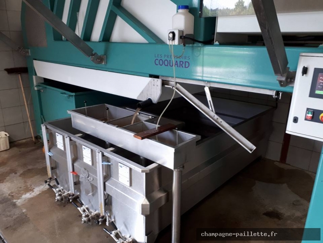 Le pressurage se fait en plusieurs phases et les moûts (jus) sont fractionnés : on recueille séparément la cuvée (le premier jus et donc le meilleur) et la taille (les deuxièmes jus).