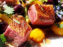 Puis couper le magret en cubes, les placer sur les assiettes de service, avec les mirabelles, les raisins, les haricots et les champignons. Déglacer la poêle avec le tamari et verser. Ajouter quelques fleurs de thym, feuilles de persil. Parsemer de piment d'Espelette tandis que le champagne vient d'être ouvert et servi... S'installer et savourer...